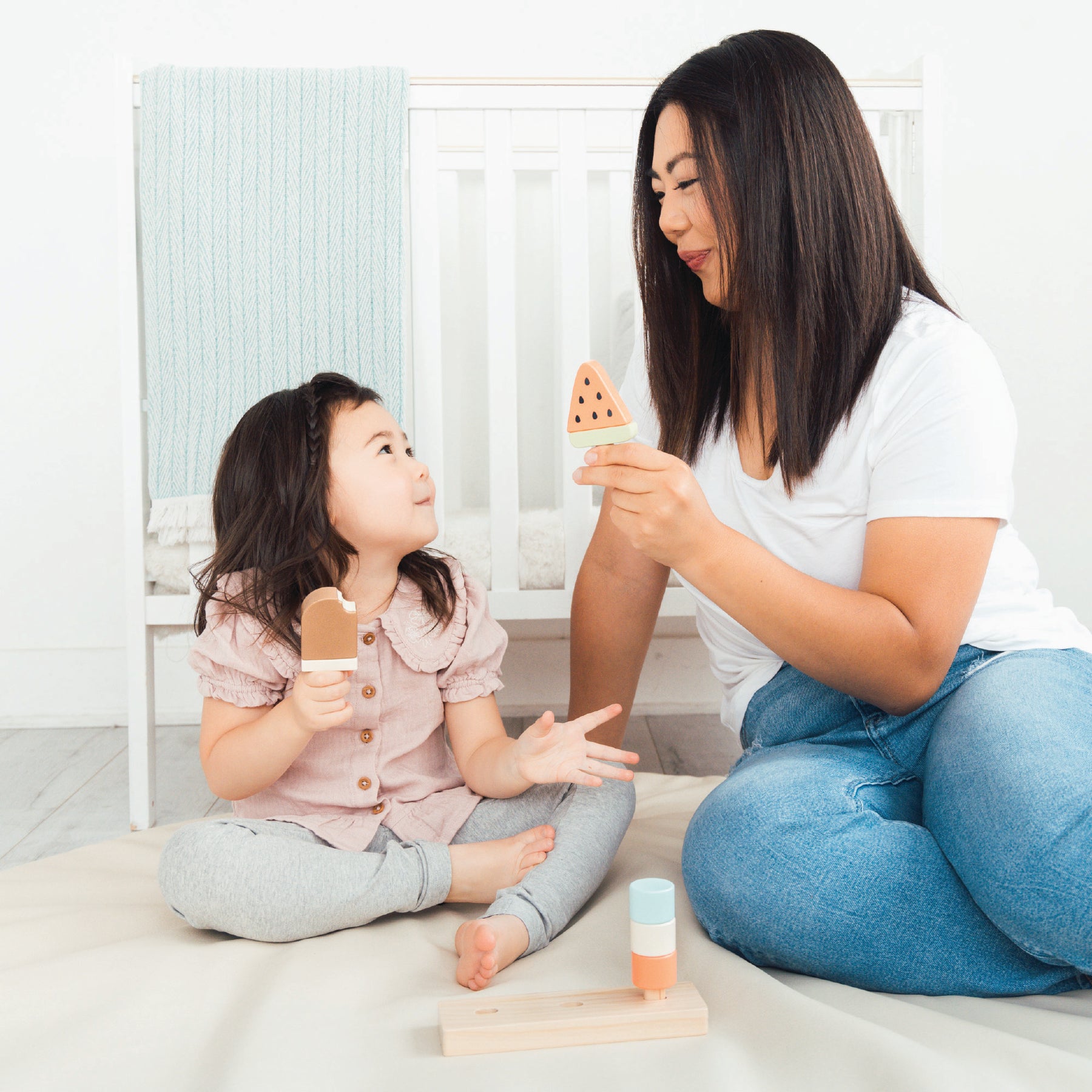• Interactive Montessori ice cream stacking toy: Includes a sturdy wooden base and three mix-and-match desserts — chocolate bar, watermelon slice, and red-white-blue popsicle — that toddlers can stack, separate, and rebuild to “scoop,” “serve,” and “create” their own pretend treats while developing creativity and imagination.