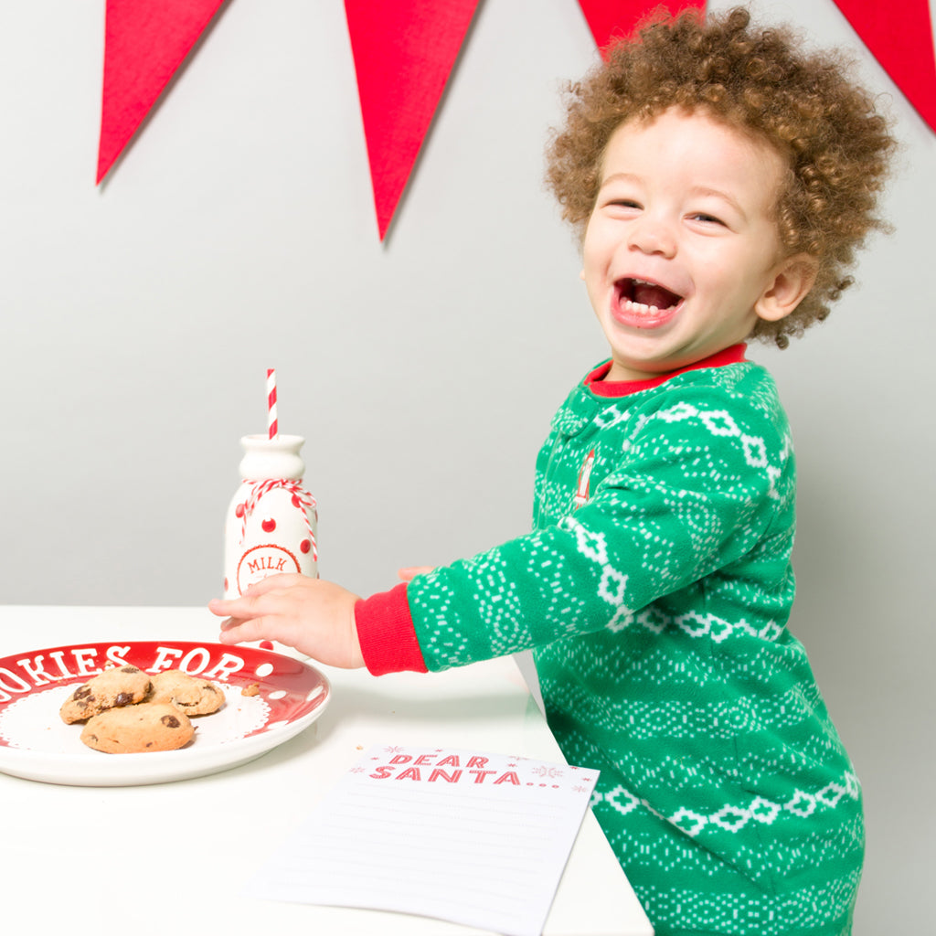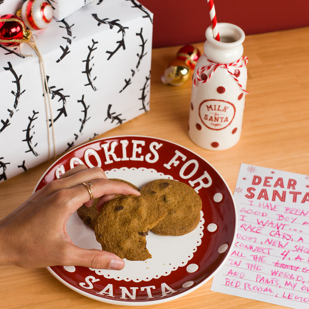 • Includes ceramic "Cookies for Santa" plate, ceramic "Milk for Santa" jug with paper straw and paper "Dear Santa" notepad